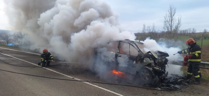 Accident rutier, urmat de incendiu, pe raza comunei Vulturești, vineri dimineață.