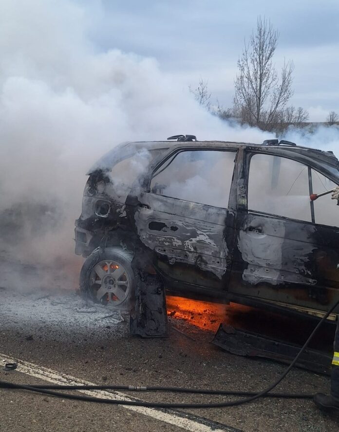 Autoturismul a fost distrus de flăcări, însă pompierii militari au localizat și lichidat incendiul în siguranță, îndepărtând orice pericol.