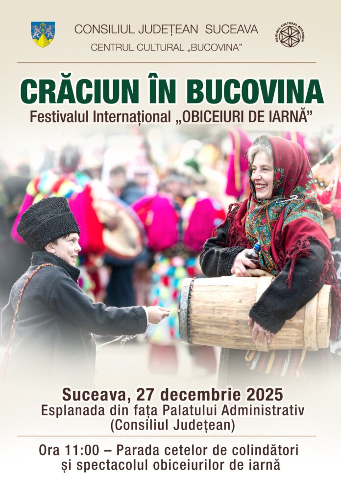 Consiliul Județean Suceava, prin Centrul Cultural Bucovina, organizează și în acest an programul „Crăciun în Bucovina”, un amplu program cultural dedicat promovării tradițiilor, obiceiurilor de iarnă și patrimoniului cultural imaterial al județului Suceava.