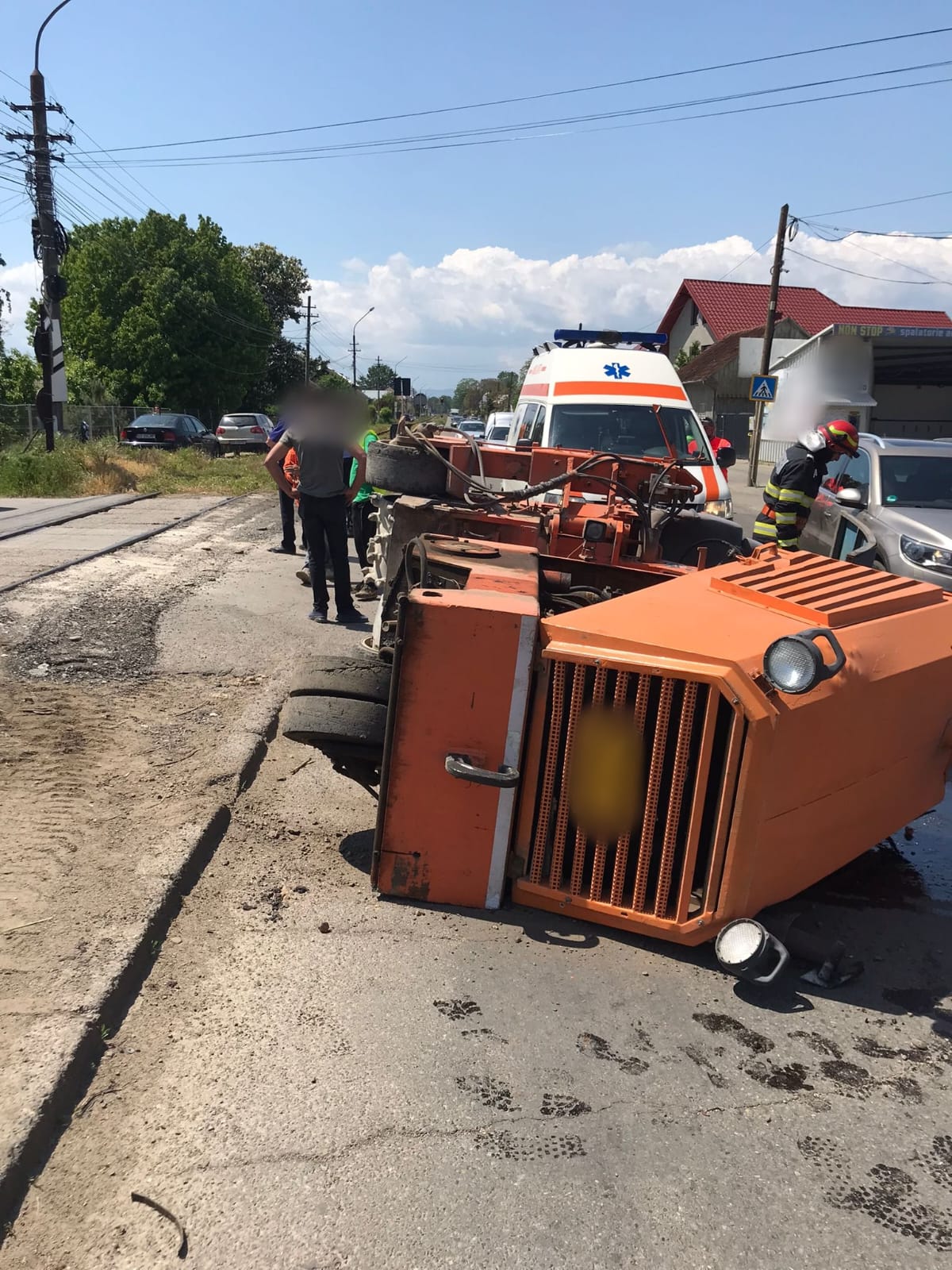 Conducătorul utilajului, conștient și cooperant, a fost preluat de echipajul SAJ pentru a fi transportat la spital.