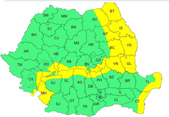 Administrația Națională de Meteorologie a emis vineri dimineață o atenționare cod galben de vânt pentru partea de est a județului Suceava