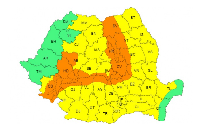 Administrația Națională de Meteorologie a emis miercuri dimineață o avertizare meteo cod portocaliu de ploi torențiale pentru zona de munte a județului Suceava.