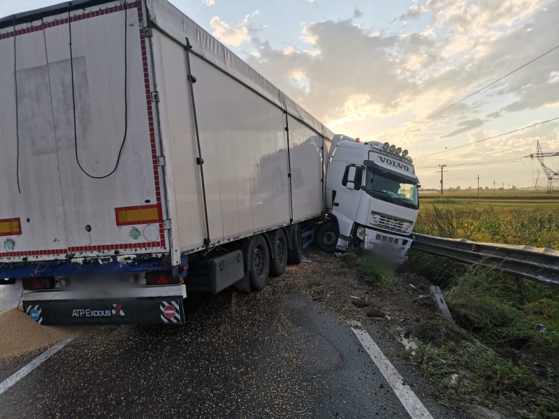 Coliziune între două autotrenuri la intrare în localitatea Roșiori FOTO