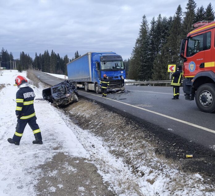 Accident rutier produs pe raza comunei Poiana Stampei, pe DN17, între un autotren și un autoturism.