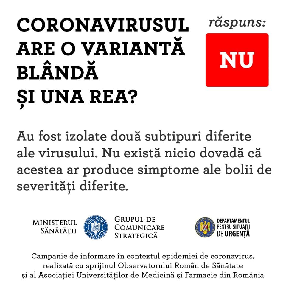 O campanie derulată de Ministerul Sănătății, Grupul de Comunicare Strategică din cadrul Guvernului României și Departamentul pentru Situații de Urgență cu sprijinul Observatorului Român de Sănătate și al Asociației Universităților de Medicină și Farmacie din România.
