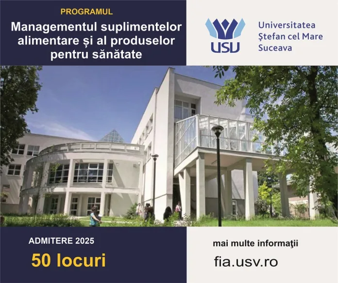 Facultatea de Inginerie Alimentară din cadrul Universității „Ștefan cel Mare” din Suceava lansează un nou program de studii de masterat, Managementul suplimentelor alimentare și al produselor pentru sănătate. Suplimentele alimentare și produsele pentru sănătate au devenit o parte integrantă a vieții moderne, iar acest program de studiu, unic la nivel național, are ca scop pregătirea de profesioniști calificați, care să înțeleagă complexitatea suplimentelor alimentare și a produselor pentru sănătate și să poată oferi sfaturi și îndrumări consumatorilor.