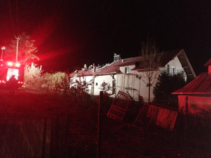 La Hârtop, 60 de metri pătrați din acoperișul casei (cu o suprafață totală de peste 200 de metri pătrați) au fost afectați de flăcări.