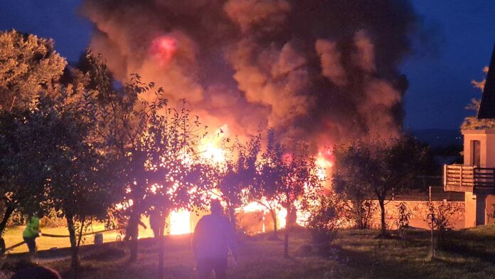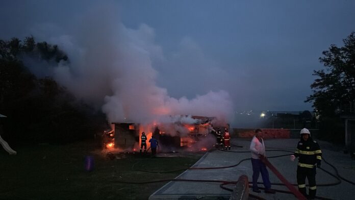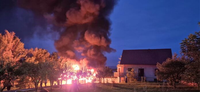 La sosirea echipajelor, construcția anexă ardea generalizat, cu pericol de propagare la casa de locuit.