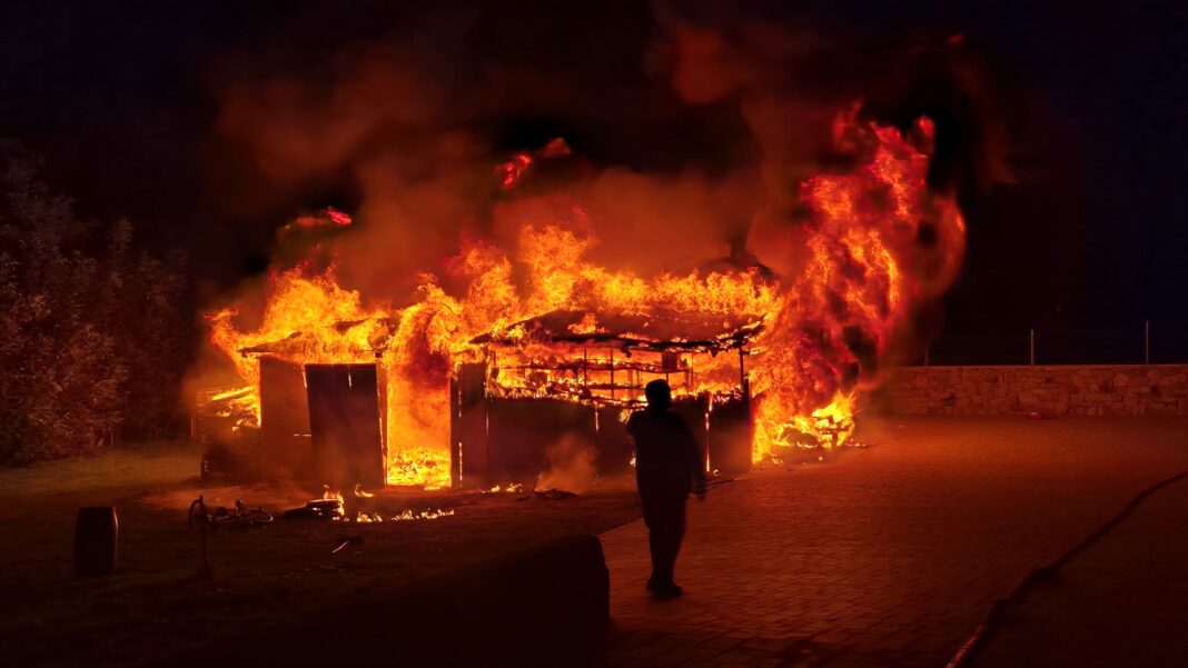 Anexa (construcție majoritară din lemn) și bunurile depozitate în interior (scule și utilaje electrice, diverse bunuri casnice și altele) au ars pe o suprafață de aproximativ 120 de metri pătrați. De asemenea, din cauza expunerii prelungite la temperaturi radiante ridicate, s-au degradat ferestrele de pe una dintre laturile locuinței.