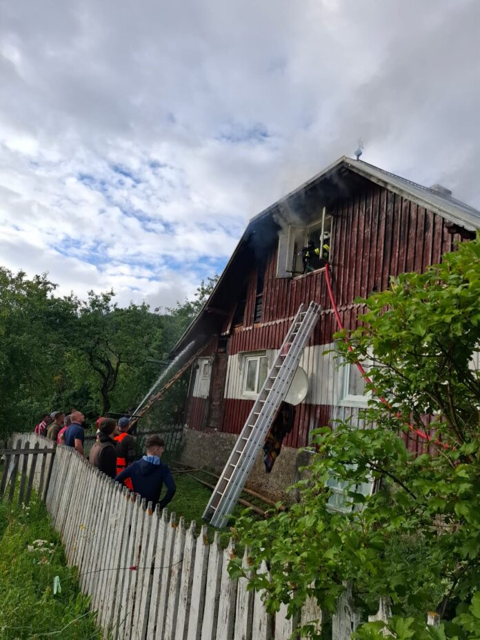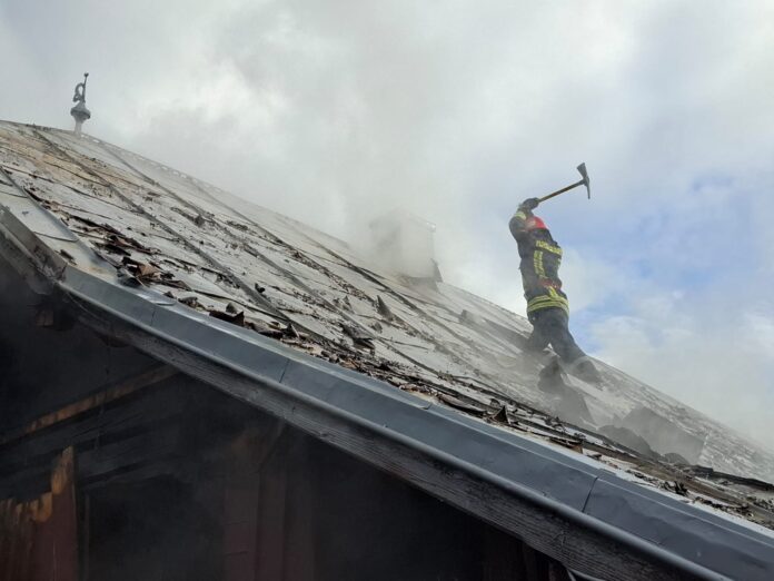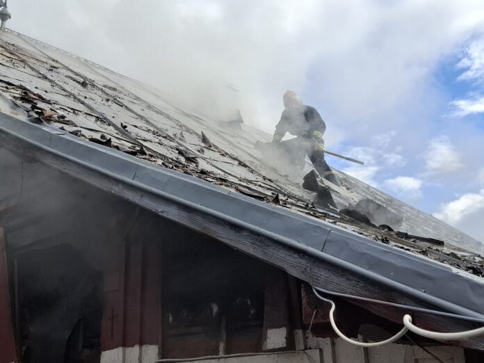 La sosirea echipajelor, ardea acoperișul casei, cu pericol de propagare la întreaga gospodărie.