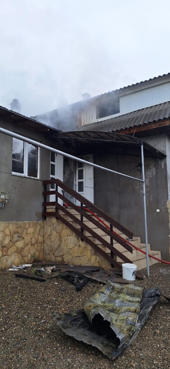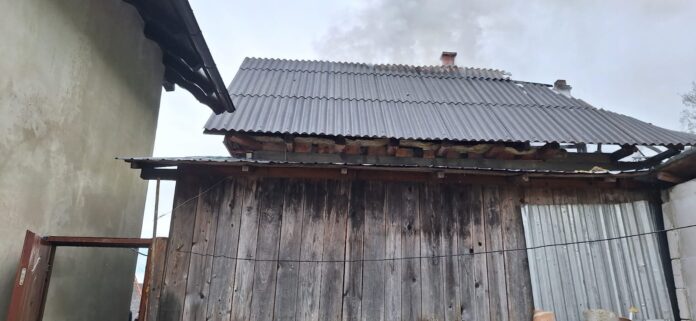 Au ars acoperișul casei pe aproximativ 150 mp, obiecte de mobilier și aparate electronice dintr-o cameră de locuit, elemente de tâmplărie (două ferestre și o ușă), precum și tavanul din lemn al încăperii.