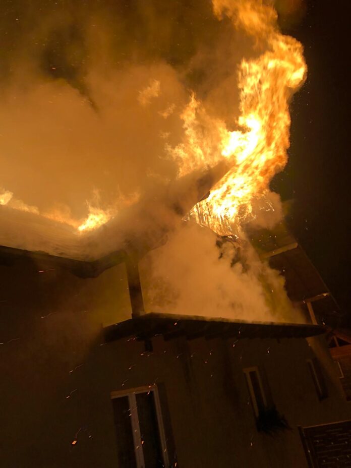 ​Au ars acoperișul, podul și mansarda locuinței,cu bunuri din interior, pe o suprafață de aproximativ 170 metri pătrați.