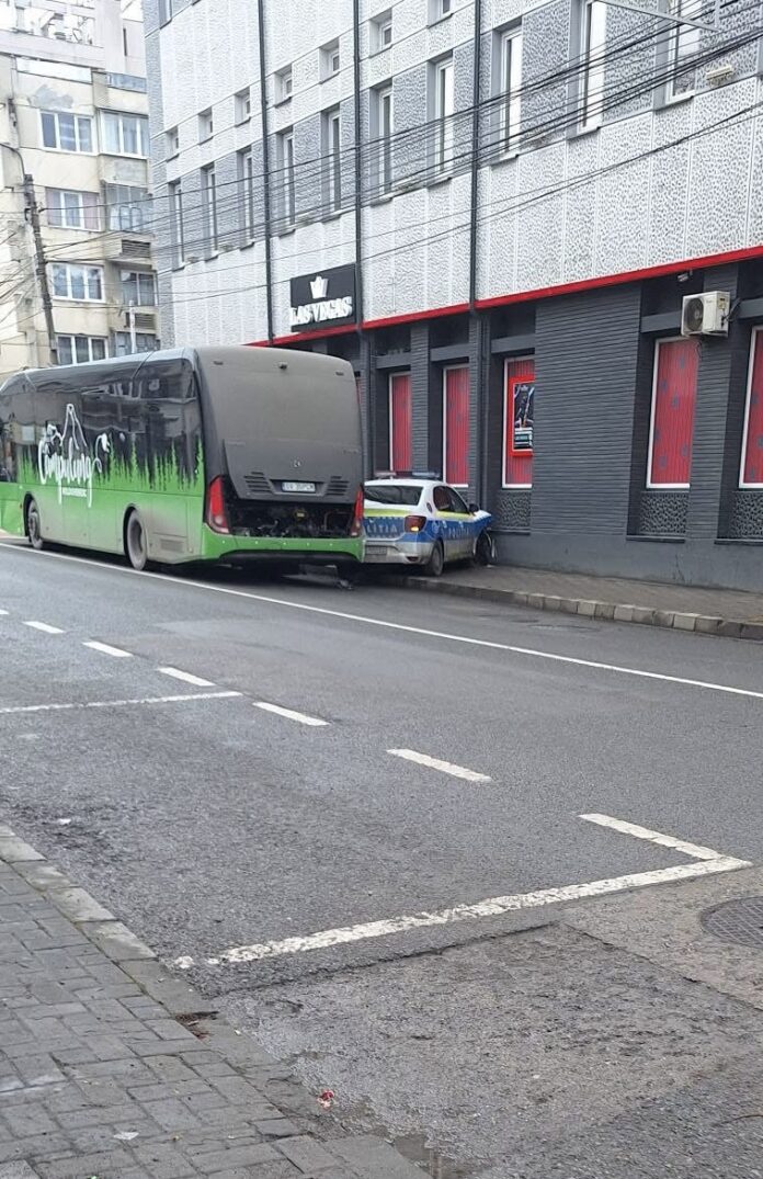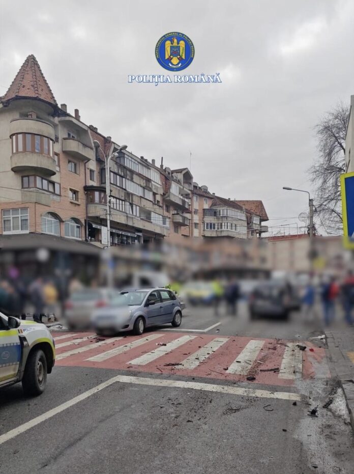 În centrul municipiului, conducătorul autovehiculului urmărit ar fi frânat brusc, motiv pentru care, polițista aflată la volanul autospecialei, pentru a evita impactul cu autovehiculul urmărit dar și cu cel care circula pe contrasens, ar fi virat dreapta, lovind o clădire cu partea frontală a autospecialei iar cu partea din spate un mijloc de transport în comun.