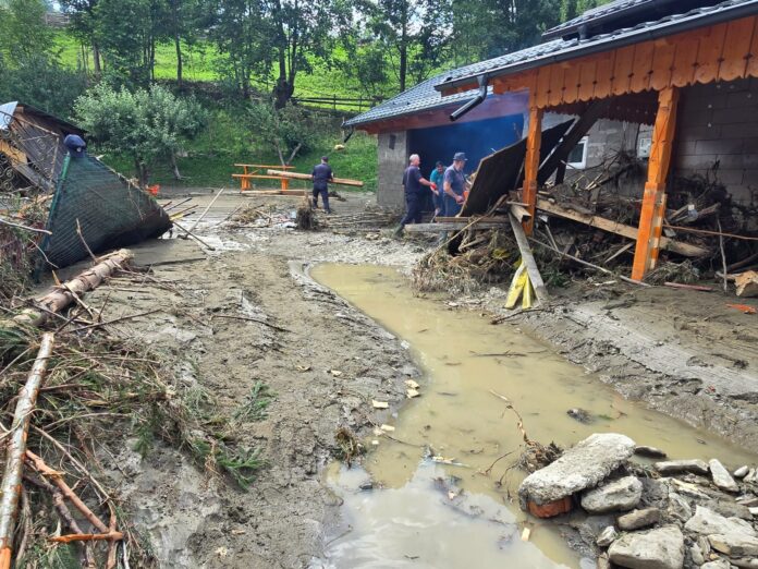 Tot în 15 gospodării s-a intervenit și în comuna Stulpicani, în zona Negrileasa – Vadu Negrilesei, de unde s-a evacuat apa și s-a lucrat pentru înlăturarea efectelor negative produse de inundații.