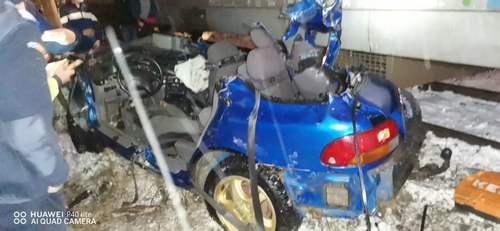 Mașină lovită de tren, la o trecere la nivel cu calea ferată, de pe raza municipiului Câmpulung Moldovenesc, duminică dimineață.