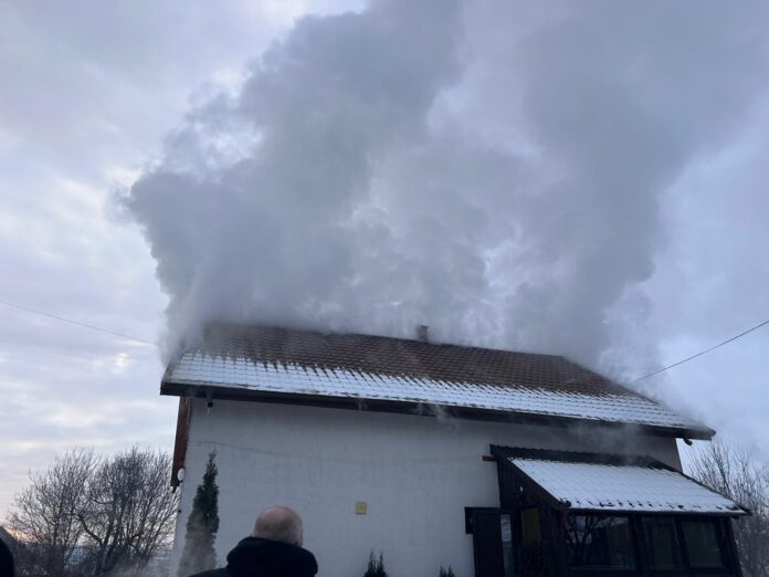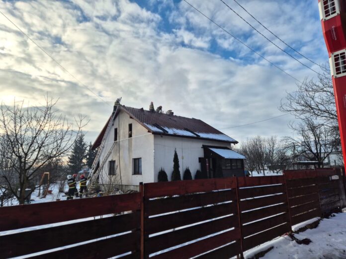 Incendiul, generat de coșul de fum neprotejat corespunzător față de materialele combustibile, a fost lichidat la ora 10.45.
