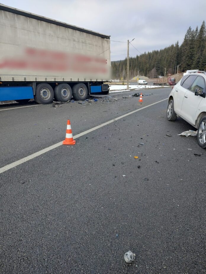 În evenimentul rutier au fost implicate patru persoane, respectiv, conducătorul autotrenului și trei ocupanți din autoturism. Două dintre cele trei persoane din autoturism au rămas încarcerate.