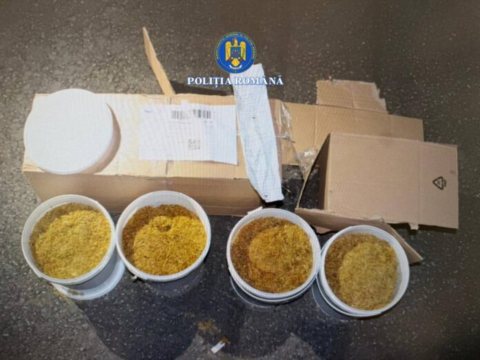S-a procedat la desigilarea cutiilor de carton indicate de către câinii de servicu, ocazie cu care într-una dintre acestea au fost identificate un număr de patru recipiente de de dimensiuni mari, sigilate, în interiorul cărora a fost identificată o substanță cu aspect și miros de tutun, tip fir, iar în cealaltă cutie de carton au fost identificate un număr de patru pungi din plastic tip zip-lock, în interiorul cărora a fost identificată o substanță vegetală cu aspect și miros de tutun, de dimensiuni mai mari, bunurile neprezentând marcă, timbru sau alte documente de însoțire care să ateste proveniența și legalitatea acestora.