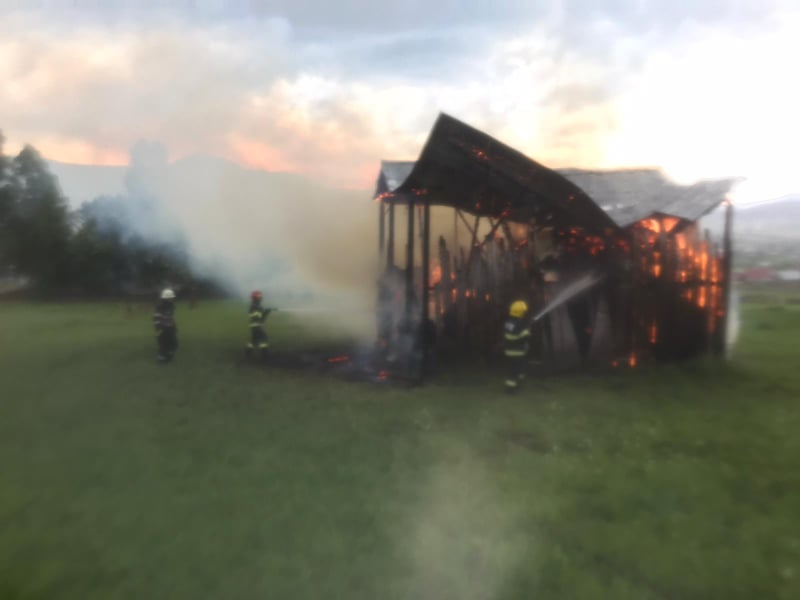 Un trăsnet direct a aprins un depozit de furaje (fânar), în care se aflau circa 10 tone de fân.