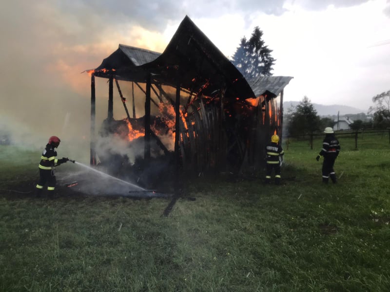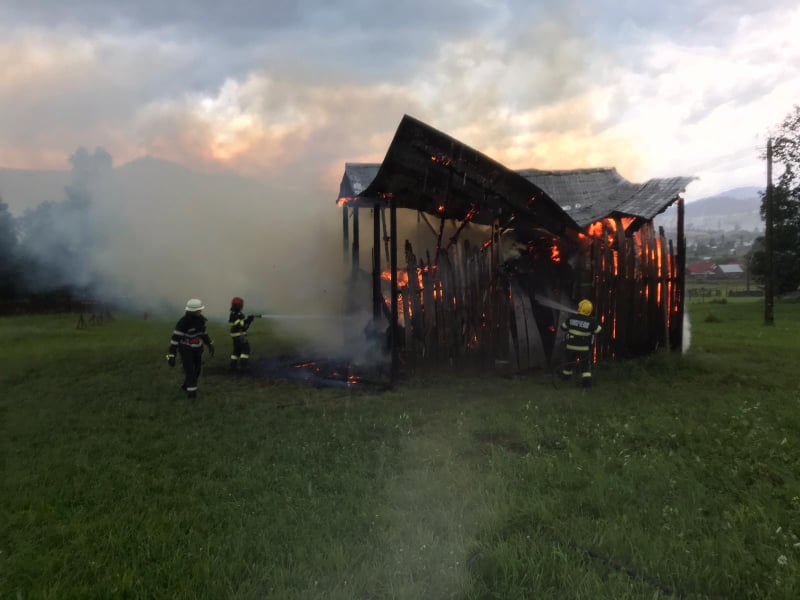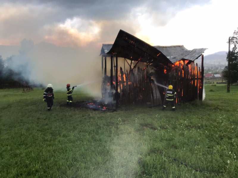 Un fânar a luat foc din cauza unui trăsnet, la Dorna Candrenilor FOTO