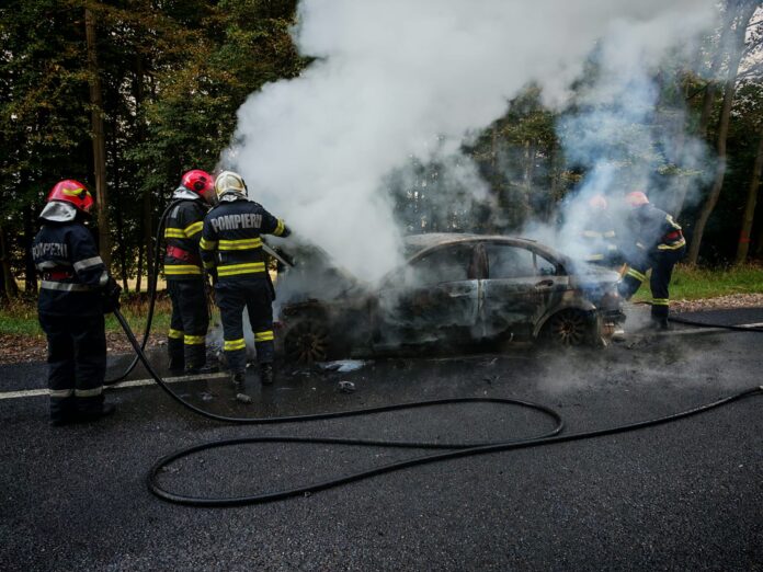 La sosirea echipajelor incendiul se manifesta generalizat la întreg autoturismul, se lucrează pentru lichidare.