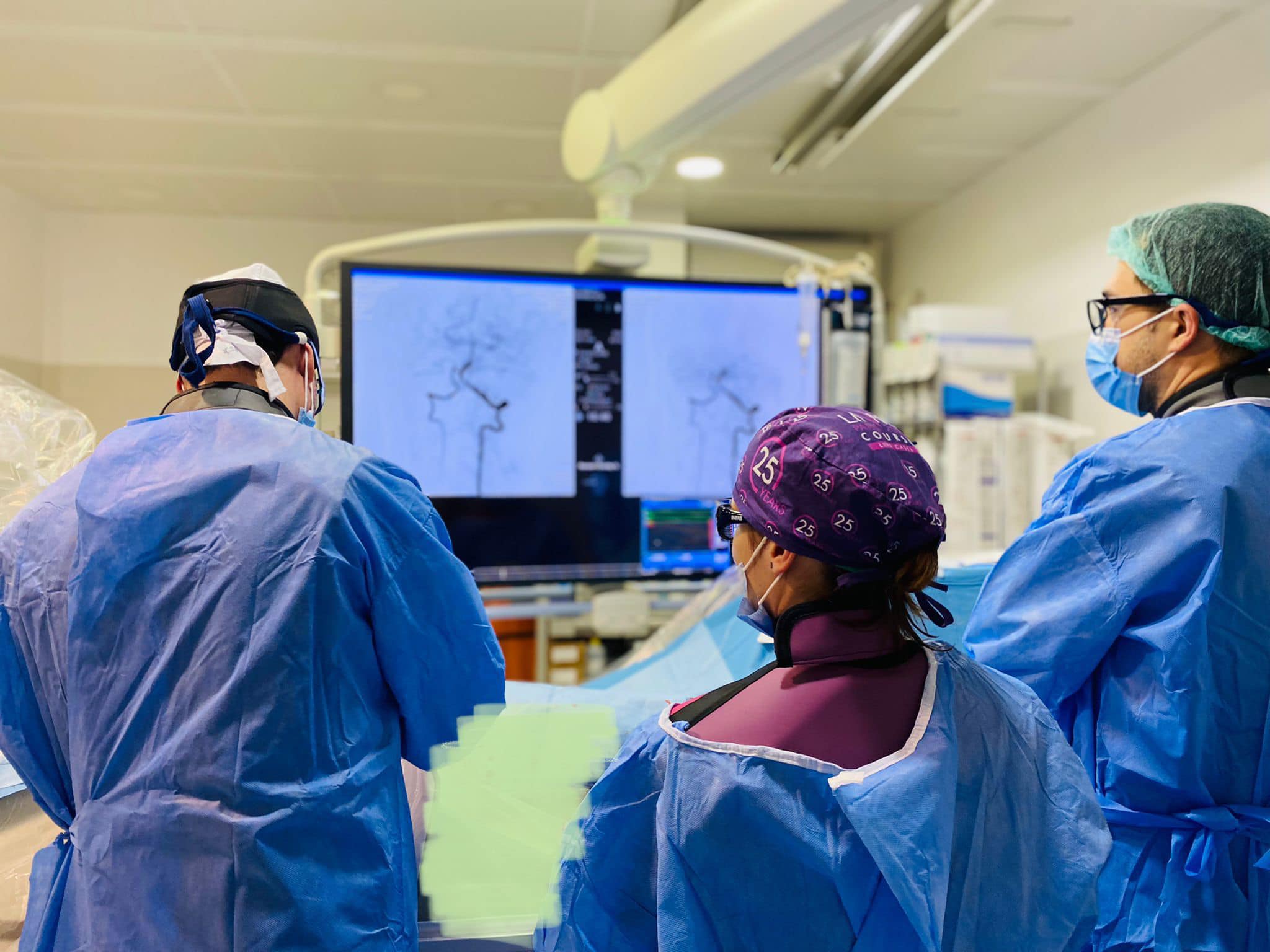 „Pacienta de 48 de ani cu AVC ischemic acut, a ajuns în timp util la Serviciul de Radiologie Intervențională și s-a reușit extragerea cheagului de sânge din vasul blocat (artera bazilară) în mai puțin de 45 min. În momentul de față pacienta poate comunica și își mișcă toate membrele. Timpul înseamnă creier!”, a declarat dr Cătălin Lulciuc, radiolog intervenționist.